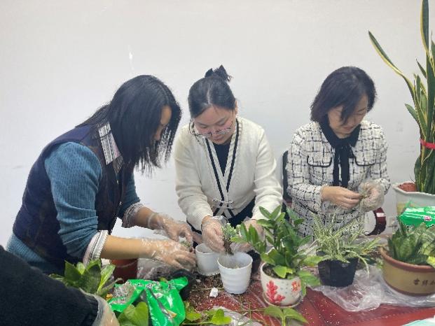 经过教师们的共同努力,一盆盆鲜花有了崭新的面貌,随着活动的圆满结束,学院每个角落都变得生机盎然,每位教师的笑容中都洋溢着节日的喜悦和对未来美好的期待。