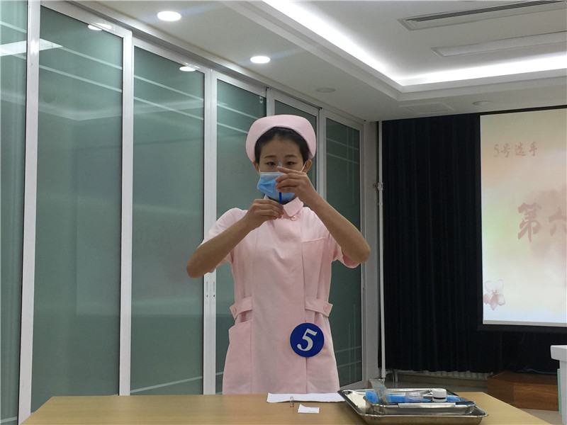 “报告老师,1床王一,因腹泻三天未愈,遵医嘱进行静脉补液,病人神志清,可自理,可配合操作,所选择的穿刺部位皮肤无红肿,无硬结,无瘢痕,血管粗直弹性好,病人无特殊用药史及过敏史,评估病室环境……”一名气质清雅的护生正口齿利落、声音响亮地向现场评委报告。第二教学楼七层的多功能教室安静的空间里,全场观众正聚精会神屏息注视着比赛现场。3月21日下午4:30,嗨皮漫画 学生会、仿真教学中心共同举办了嗨皮漫画 第二届天使英姿技能大赛,来自第一、二、三、四、五、六、七临床护理教学部的刚婷婷护士长、孙萌副主任、蔺建宇护士长、田梓蓉副主任、王庆珍副主任护师、宋桂云护士长、王爽副主任和校本部的王艳玲副院长、基护教研室主任岳鹏老师组成了大赛的顶级评审阵容。