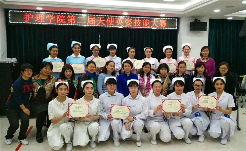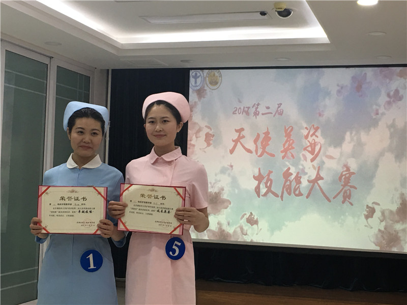 紧张的现场气氛交织着优美的视觉体验,四个小时的时间转瞬而过,16位选手关于64个礼仪小项、11个操作小项的展示圆满完成。最终,来自第六临床护理教学部的赵洋同学获得了“风采英姿”单项奖,来自第七临床护理教学部的曹文硕同学获得了“卓越技能”单项奖;由梁珊/周东赛同学组成的第二临床护理教学部代表队、李曼/王妍同学组成的第三临床护理教学部代表队、董可心/马静雅同学组成的第五临床护理教学部代表队、贾陶璇/赵洋同学组成的第六临床护理教学部代表队、范丽祎/张博寒同学组成的校本部代表队获得了三等奖,由边紫云/张一桐同学组成的第四临床护理教学部代表队、张宇萌/王雅欣同学组成的第一临床护理教学部代表队获得了二等奖,由郑雨桐/曹文硕同学组成的第七临床护理教学部代表队表现优异,荣获大赛一等奖。