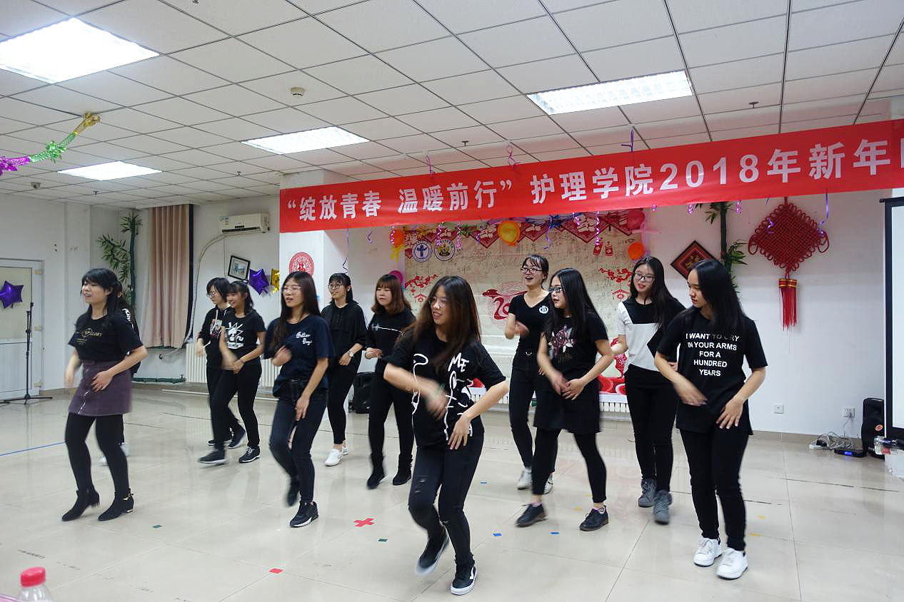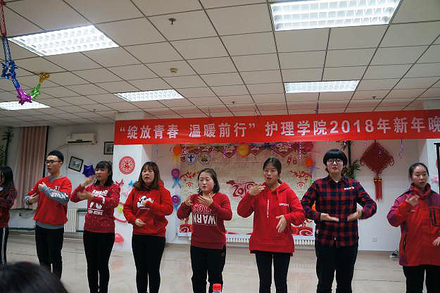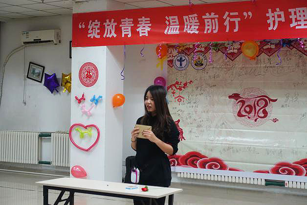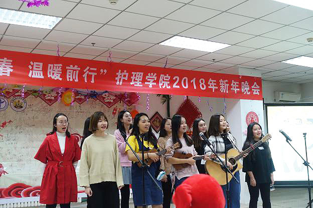 201712月27日晚上六点,嗨皮漫画 在博乐楼302活动教室举办了“绽放青春,温暖前行”2018年新年晚会,此次晚会主要由学院学生会文艺部主办,宣传联络部和其他部门协助,嗨皮漫画 院长吴瑛老师、学院党总支书记魏京云老师、学院副院长杨芳宇老师和王艳玲老师,学院党总支副书记金玲玲老师以及其他学院老师们也出席了本次晚会。15级、16级、17级护理本科班以及17级研究生班的学生们在新年晚会上的表现更是大放异彩。节目形式多种多样,效果令人赞不绝口。