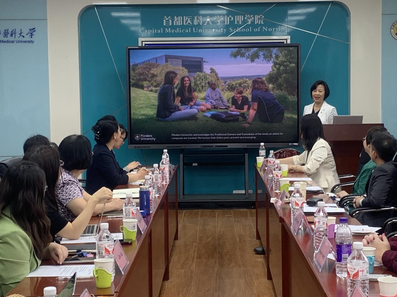 弗林德斯大学Elizabeth Newnham副教授参会,双方就开展短期及长期交流与访学、课程与教学资源建设以及科研合作等方面进行了深入讨论,为后续在母儿护理领域的实质性合作奠定了坚实基础。母儿护理学学系及各临床教学部的师生参会。会议由肖倩主持。