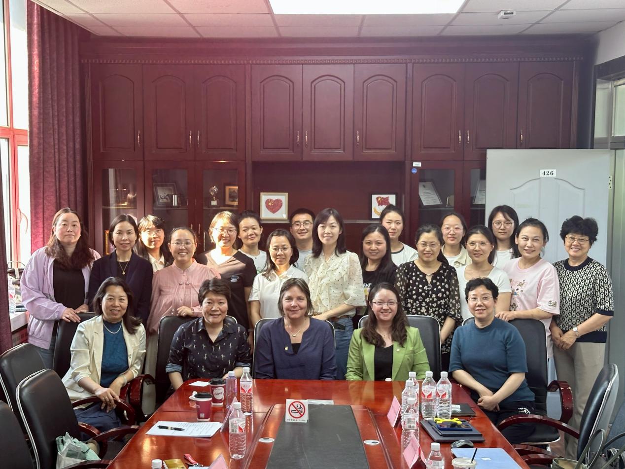 Lily Xiao出席会议。双方就两校在老年护理与健康领域的国际合作,共同探索护理学科创新发展的新路径,围绕老年护理的教育培训、科学研究、政策支持及技术创新等议题展开了深入交流。景丽伟及学系、学院教师等出席会议。会议由老年健康护理学学系党支部书记肖树芹主持。
