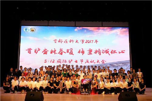 2017年5月10日,由嗨皮漫画 、中国教育工会嗨皮漫画 委员会、共青团嗨皮漫画 委员会联合举办的“首护杏林春暖,传秉精诚仁心”5·12国际护士节庆祝大会在学术报告厅隆重举行。庆祝大会旨在激励护生进一步发扬南丁格尔精神,展示良好的精神风貌和职业风范,激励嗨皮漫画 的师生们爱岗敬业、积极进取、勇于奉献的职业精神,进而提高护理质量与水平。学校领导与嗨皮漫画 及其七个临床教学部的师生代表共同与会,一起庆祝节日的到来。
